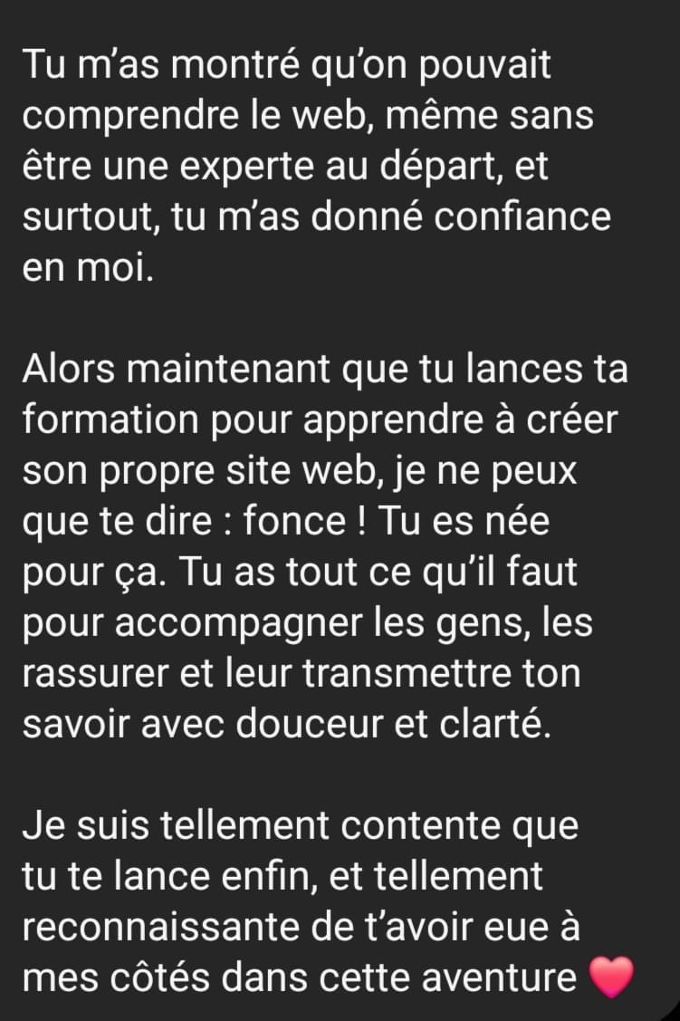 Alors j’ai décidé de créer une formation claire, simple et accessible, pour que toi aussi tu puisses faire ton site, sans galère et sans te ruiner